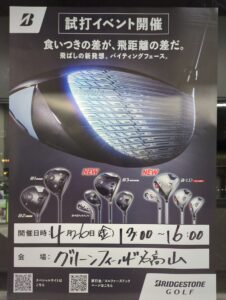 Posted on 2024年3月31日2024年3月31日 by 4月試打会のお知らせ4/26 (金) ブリヂストンゴルフ試打会 13:00~16:00 4/27(土) リョーマゴルフ試打会 10:00〜16:00