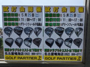 Posted on 2024年4月28日2024年5月26日 by 5月試打会のお知らせ (追加あり)5/25(土) ゴルフパートナー名古屋鳴海店試打会 11:00~17:00 (5/24追記)5/26(日) リョーマゴルフ試打会 10:00〜16:00