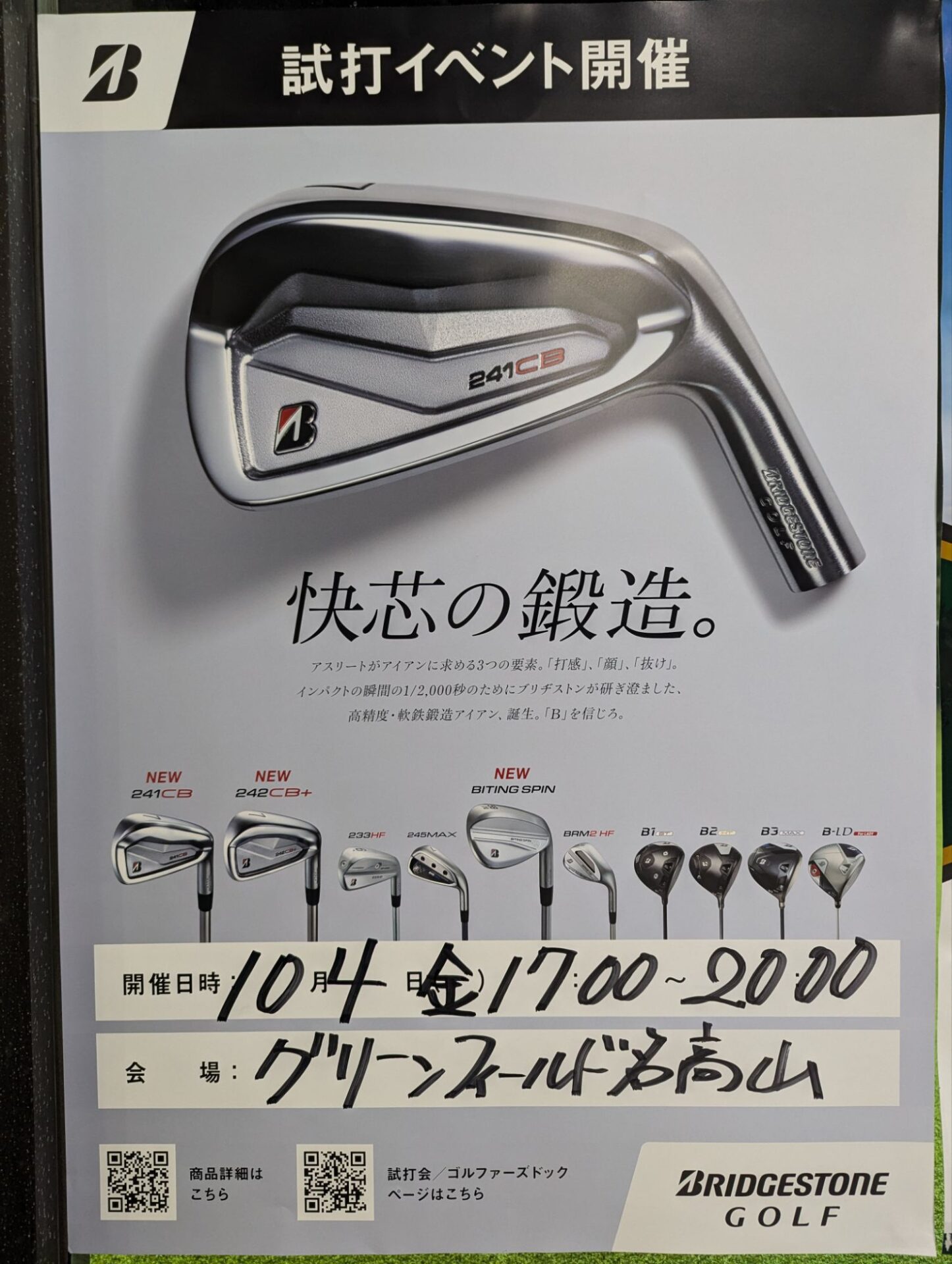 Posted on 2024年9月15日2024年9月29日 by 10月試打会のお知らせ10/4 (金) ブリヂストン試打会 17:00〜20:0010/18 (金) リョーマゴルフ試打会 10:00〜16:00
