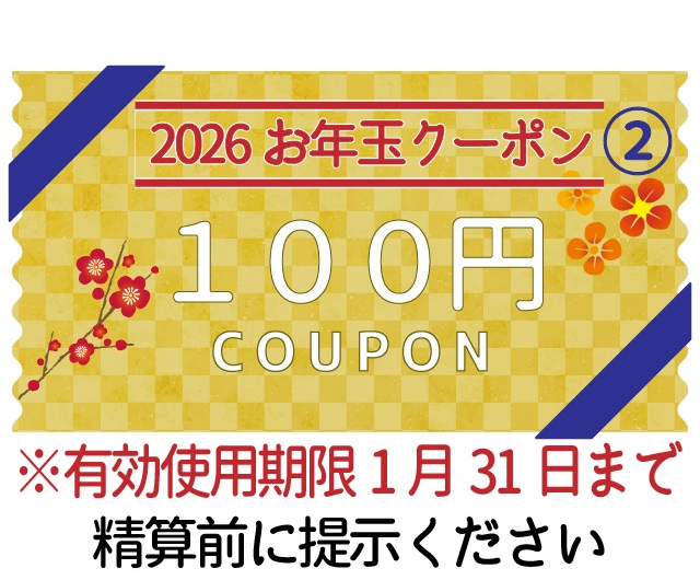 Posted on 2026年1月5日2026年1月5日 by 2026お年玉クーポン配布中です有効使用期限が1月31日までのクーポンとなります。会計前にクーポン内のバーコード画面をご提示下さい。 新着情報一覧
